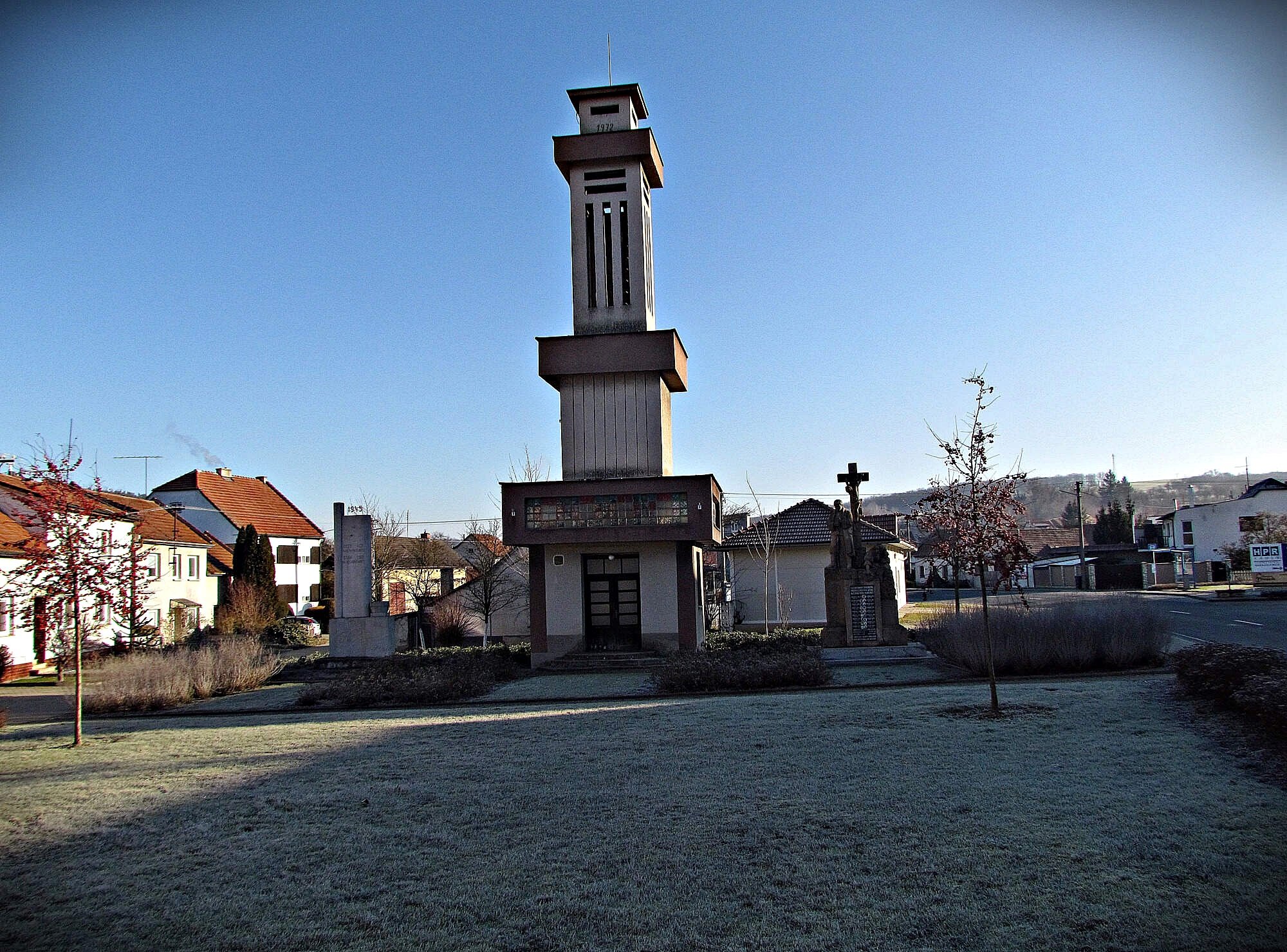 Po obou stranách je dnešní objekt zvonice lemován Pomníky padlým v obou světových válkách.
