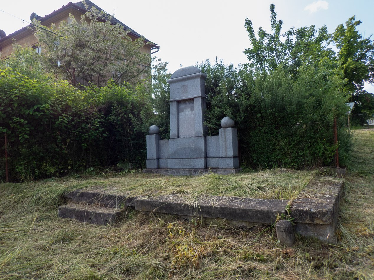 V centrální části pomníku je přetesaný nápis mezi postranními sloupky: