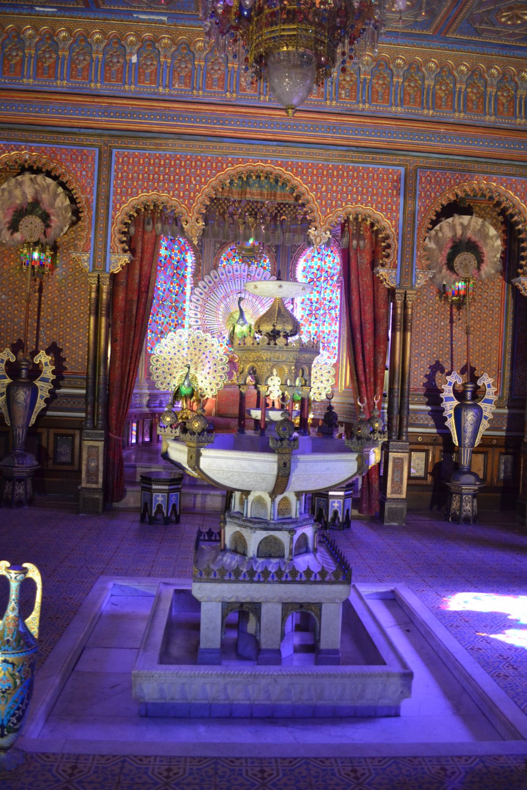 K orientalnej budove vedie schodište. Návštevník môže vojsť cez červený záves dovnútra a cez sklenené dvere nazrieť do miestnosti. Pomocou farebných okenných skiel za pomoci pestrých svetiel sa návštevníkovi naskytá úchvatný pohľad. Oproti dverám bol v roku 1877 umiestnený páví trón. Nad a po stranách kresla sú tri pávy zhotovené z farbenej smaltovanej liatiny s rozprestretým chvostom, ktorý je z brúseného českého skla.