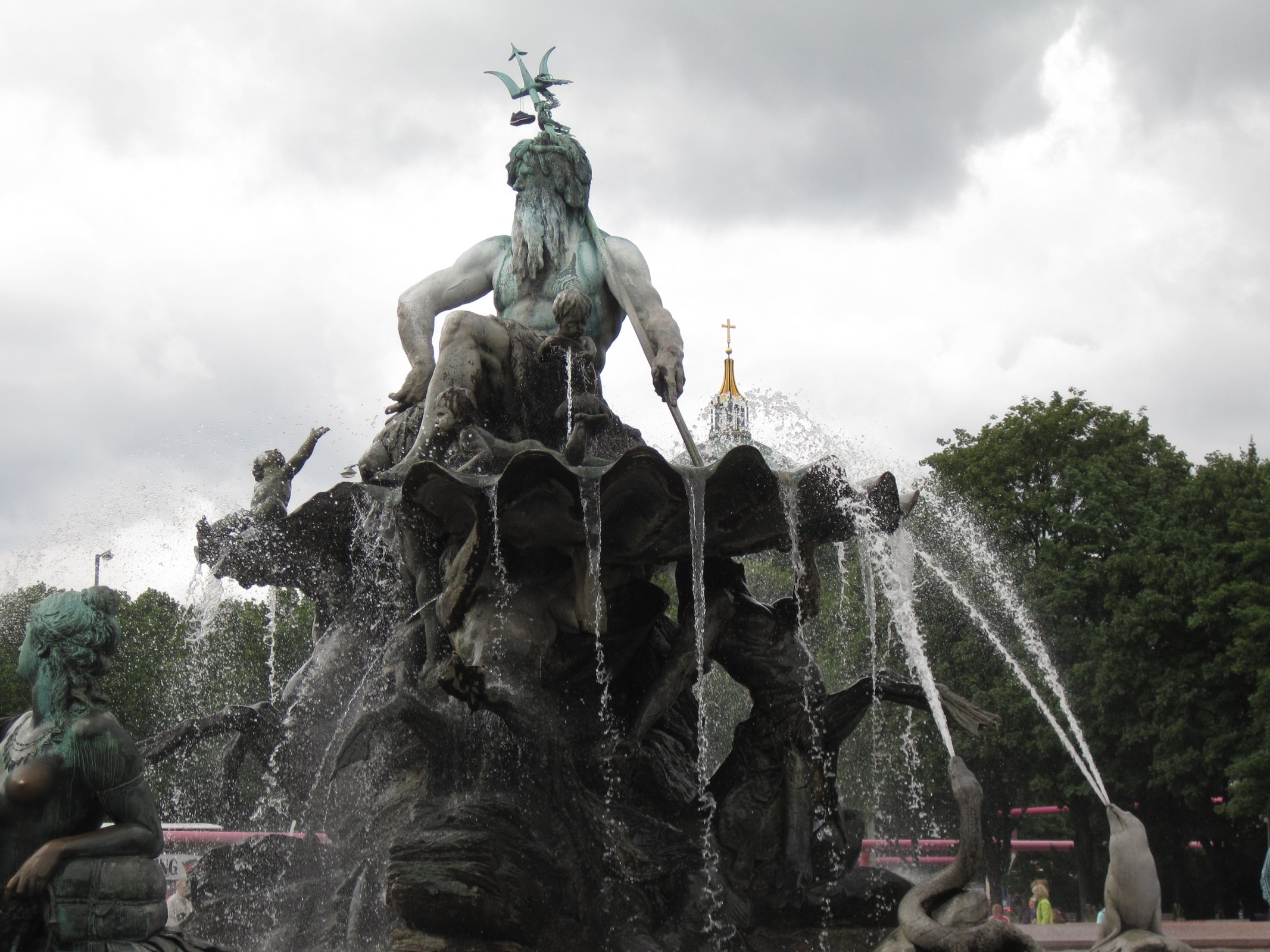 socha římského boha Neptuna a kolem něj jsou čtyři ženy představující čtyři hlavní řeky Pruska v době, kdy byla kašna postavena: Labe, Rýn, Visla (nyní v Polsku) a Odra (nyní hranice mezi Polskem a Německem)