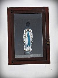 Asi 300 metrů od středu Neubuzu stojí na západním konci obce nad cestou novodobá bělostná Boží muka s červenou stříškou. Z jejich prosklené skříňky kolemjdoucí pozoruje soška Madony.