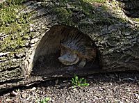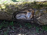 Pokud bychom odtud pokračovali do kopce dál po cestě vedoucí až do Slušovic, narazili bychom po dalších několika stovkách metrů na kryté tur.odpočívadlo na louce u lesíka. Lokalita se nazývá Bílá Hlína a vedle přístřešku se na zemi povaluje několik kmenů stromů, do nichž nějaký anonymní místní kumštýř vyřezal reliéfy i sošky u nás žijících drobných lesních a vodních zvířat.