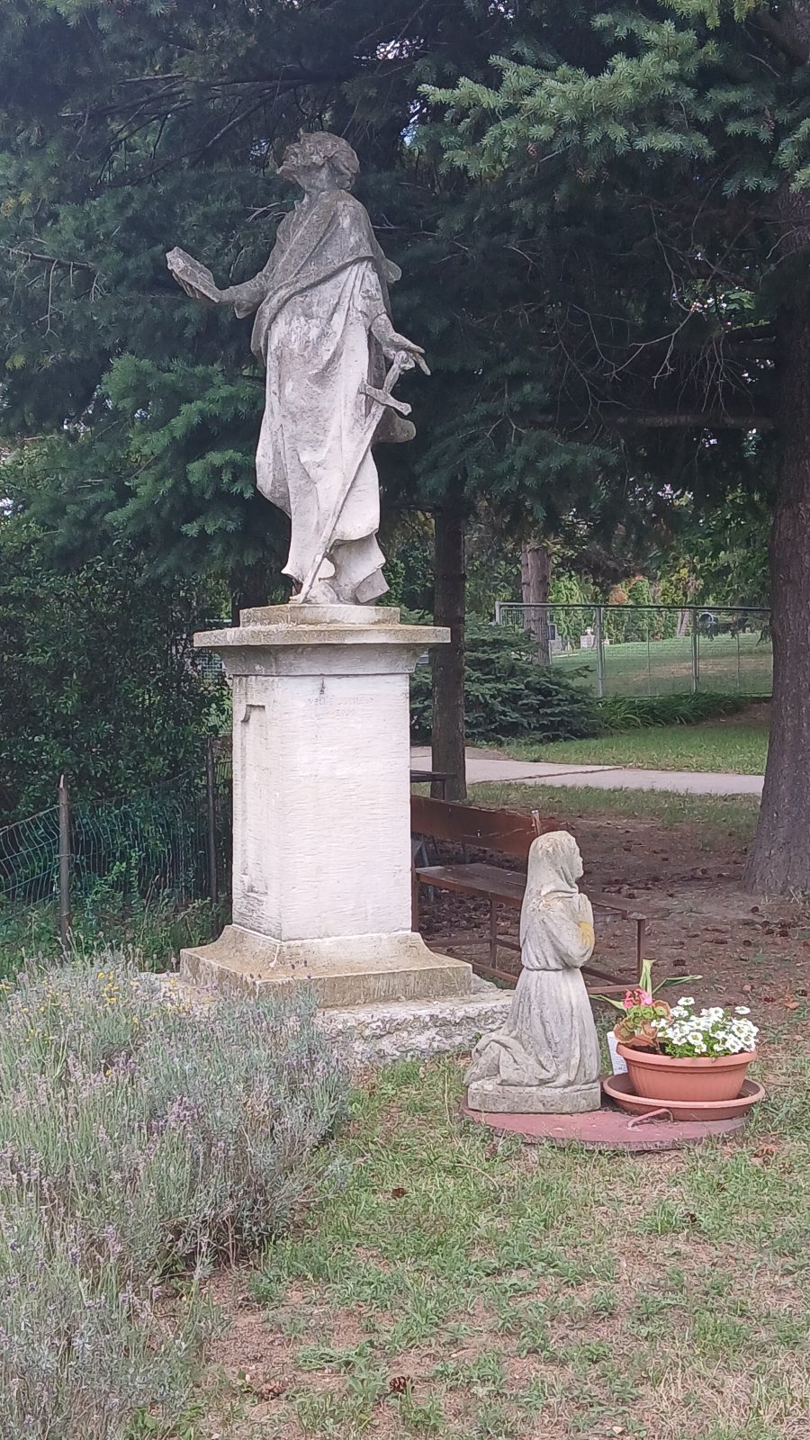 pohľad od Lurdskej jaskyne na sochu sv. Pavla apoštola pred kostolom autor: bublinko2