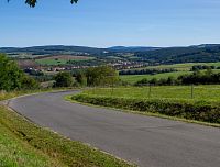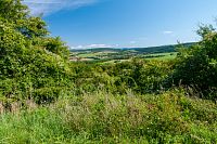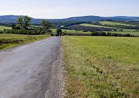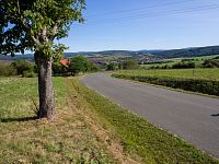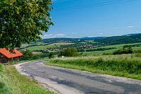 Směrem k Nezdenicím silnička poměrně prudce klesá do přeci jen výraznějšího údolí Olšavy.