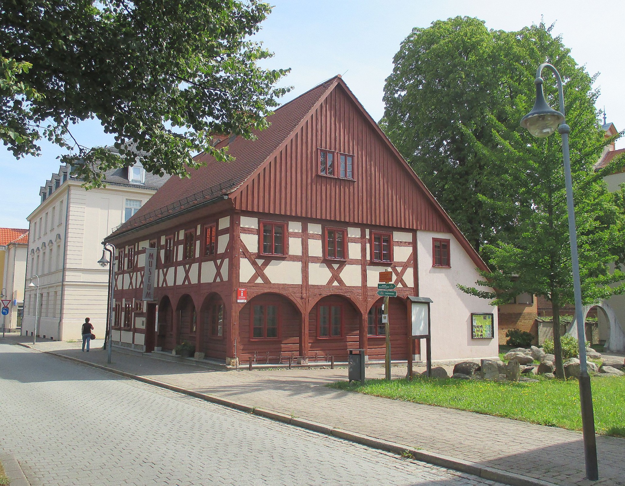 Barokní budova Městské knihovny na Zinzendorfplatze byla postavená v roce 1745. Tehdejší "Alte Pädagogium" sloužila jako internátní škola jednoty bratrské. Po rozsáhlé rekonstrukci v roce 1998 se zde usadila městská knihovna.