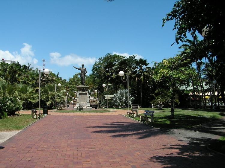 Noumea: Centrální náměstí v hlavním městě Noumea. Socha v pozadí je generál de Gaulle.