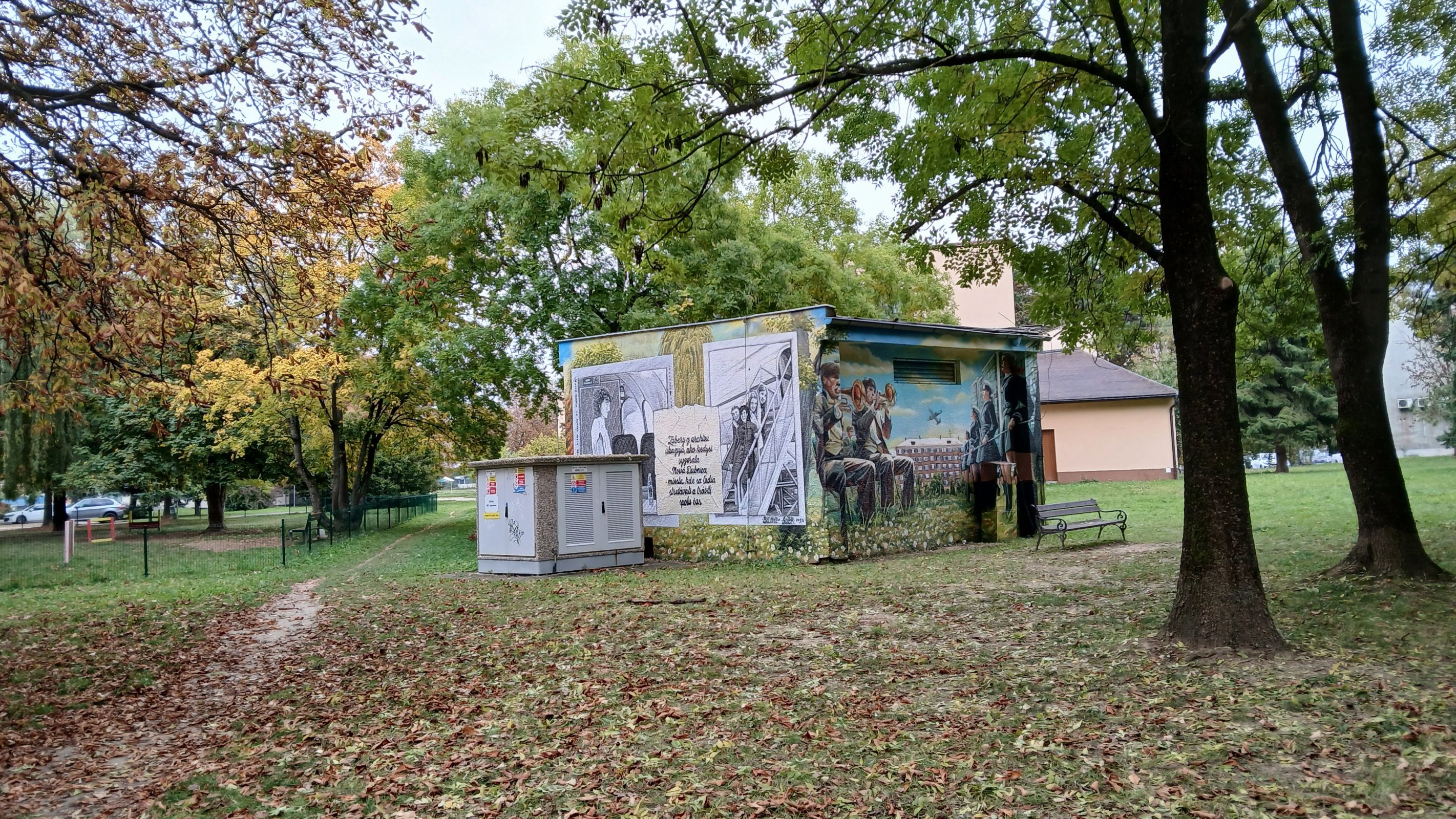 aj posledná strana trafostanice je hotová aj s podpisom umelca