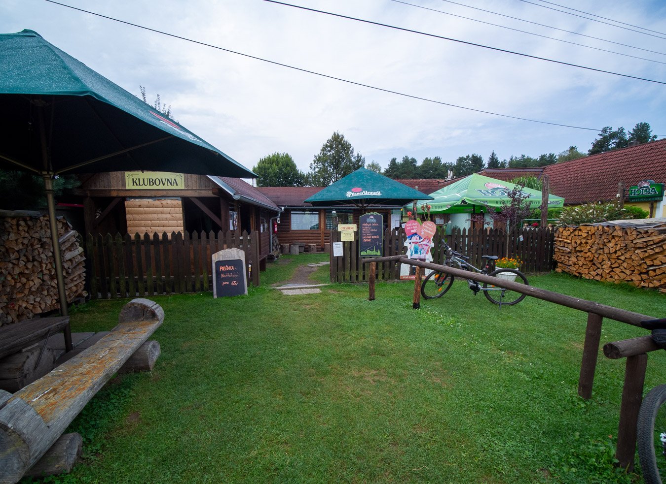 Jedním z nich bylo i posezení ve stánku s názvem „Klubovna u Petry“. Po původu zmíněné Petry jsme příliš nepátrali, nejspíš to bude majitelka příslušného podniku. Jde vlastně o menší dřevěný objekt s posezením ve vnitřní prostoře i na zahrádce. Občerstvení spočívá v klasické nabídce toho, co výletníka naláká nejdřív, tedy pitiva všeho druhu (Pivo, limo aj.). Samozřejmě jakožto krajany ze severu Moravy nás překvapila přítomnost Holby z Hanušovic. Podle vyjádření obsluhující slečny Šeráka paní vedoucí ochutnala někde v Praze a zřejmě ji jedenáctka zachutnala. K té Holbě se nabízí i Prazdroj. Káva z kávovaru, výběr limonád i nějaké té kořalky. V Klubovně se dá i něco pojíst (uzeniny, tlačenka, smažený sýr, gulášovka, kulajda apod.). Samozřejmě nechybí i nějaká rybička.