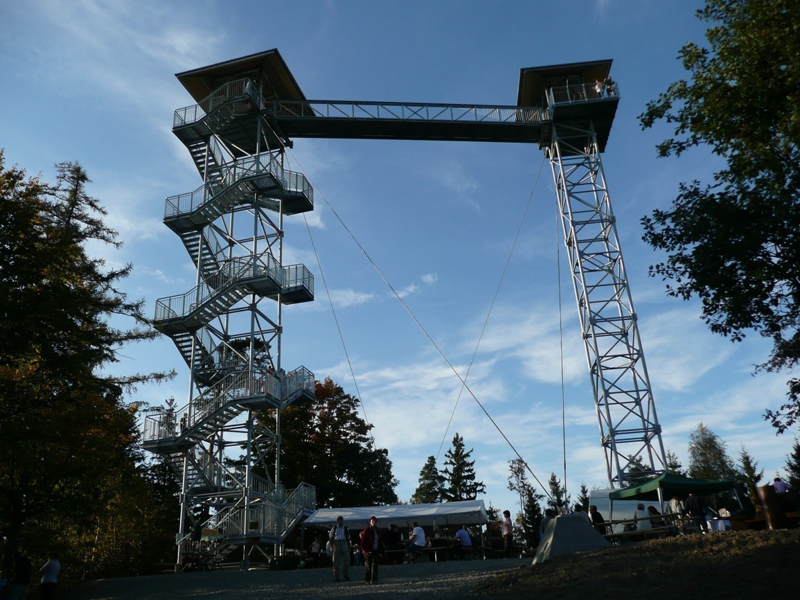 Slavnostní otevření pak proběhlo v úterý 4.10.2011. Z rozhledny lze za normální viditelnosti vidět do vzdálenosti cca 20 km. Je z ní nádherný rozhled do všech světových stran v okruhu 360 stupňů. Je odtud dobrá viditelnost na Krnov se Cvilínskou rozhlednou, na Jeseníky s rozhlednou na Biskupské kupě a Praděd, i daleko do polských rovin. Zhruba jednou za měsíc se naskytne jedinečný výhled na Beskydy, Ostravu identifikujete podle televizního vysílače Hošťálkovice a Opole, které poznáte podle velké tepelné elektrárny.