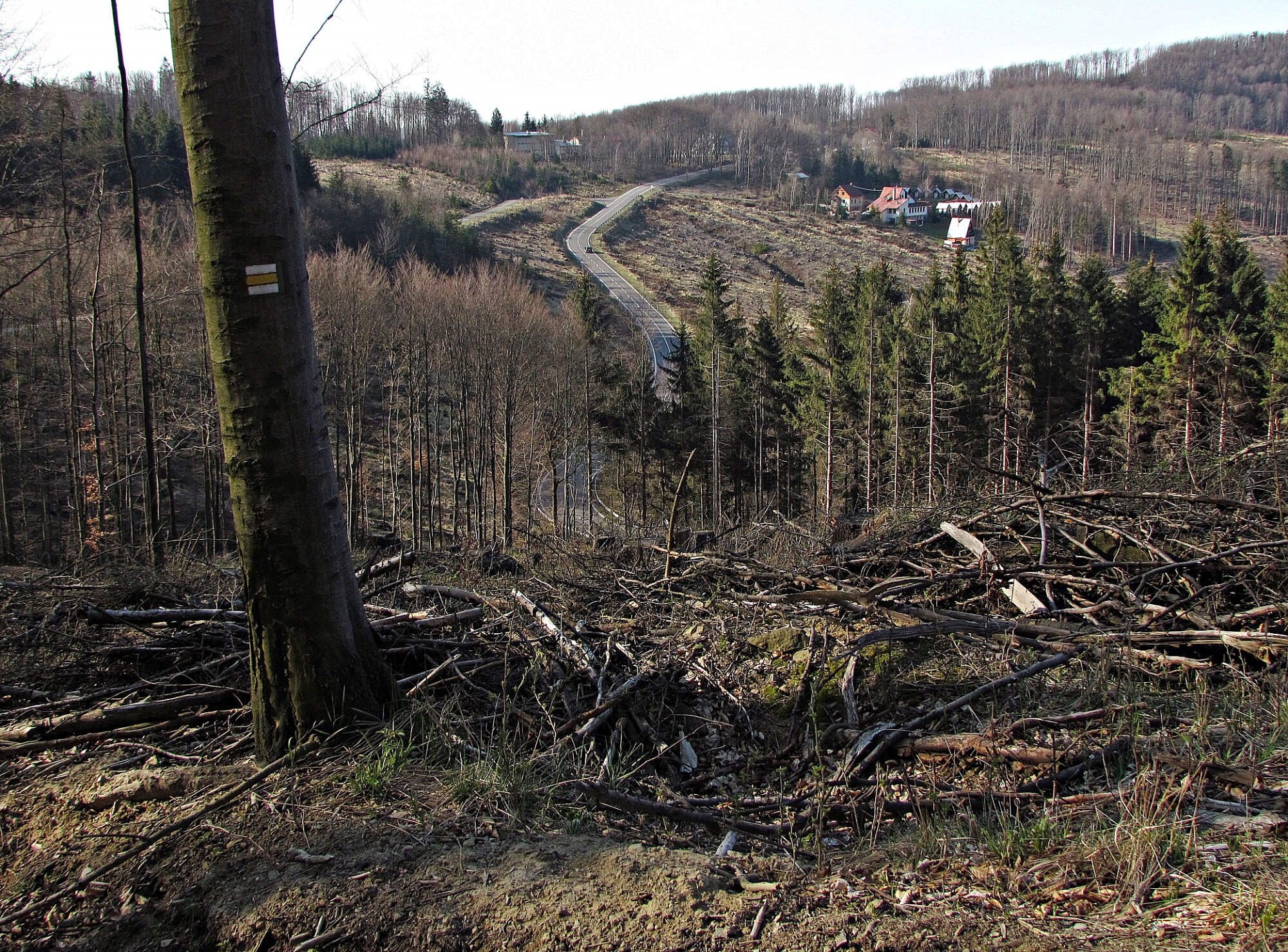 Ty daleké výhledy od rekreačního areálu a z Čerňavy jsou sice úžasné, ale kalí je fakt, že vznikly vykácením ohromných ploch lesa kvůli kůrovci. Když jsem loni v dubnu vystoupil z busu na Tesáku u nedávno vyhořelé chaty, panovala vůkol taková mlha, že jsem zdevastované okolí vůbec neviděl, neboť mlha se při mé cestě ke sv.Hostýnu začala protrhávat až kousek před Klapinovem.
