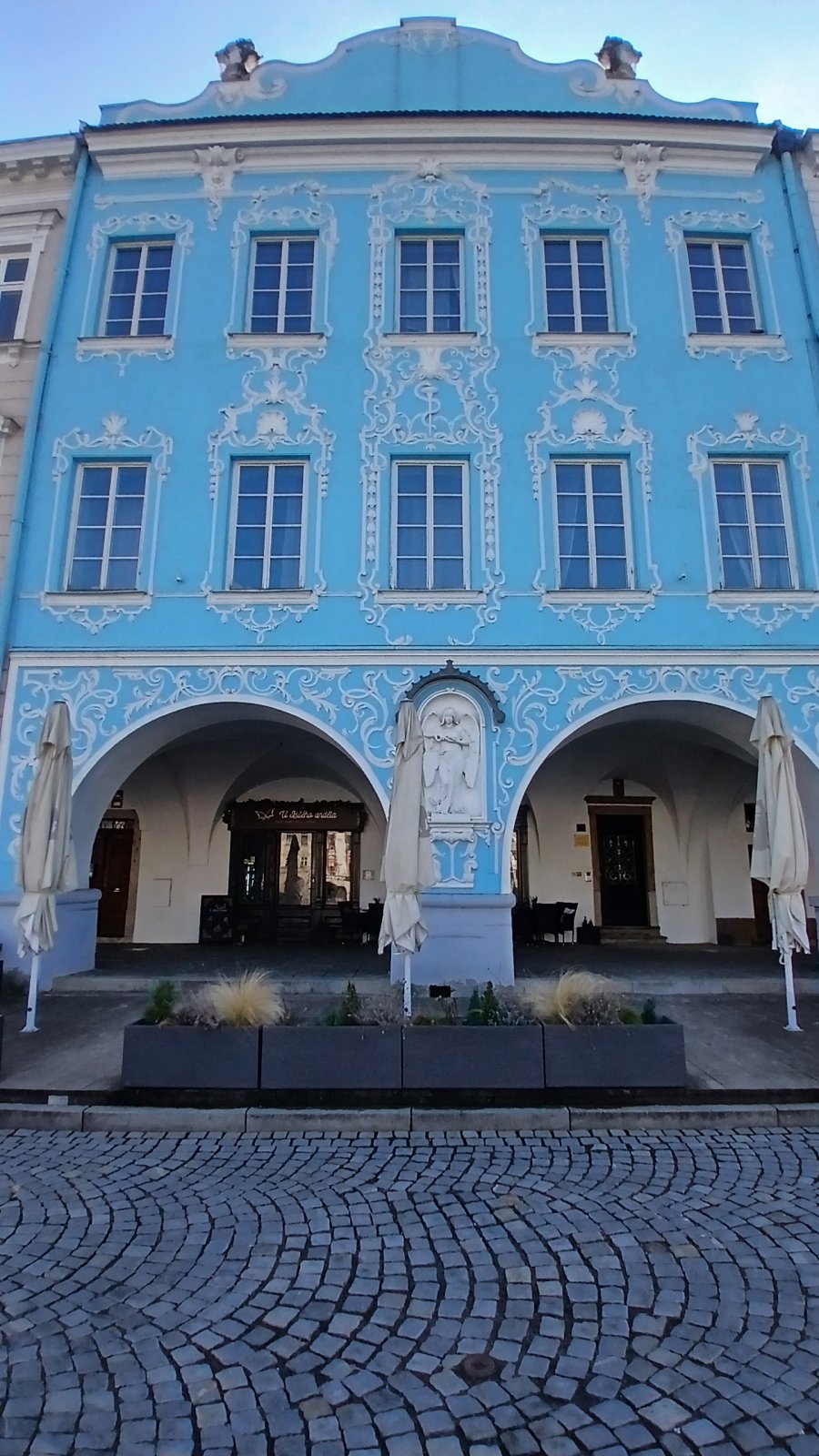 Jedným z najkrajších je Dom u Bílého anděla. V tomto neskoro renesančnom dome zo začiatku 17.storočia mala nepretržite sídliť lekáreň a to od roku 1716 až do dnešných dní. My sme tu však lekáreň nenašli, ale zato sme si pochutnali v cukrárni na horúcej čokoláde a zákusku.