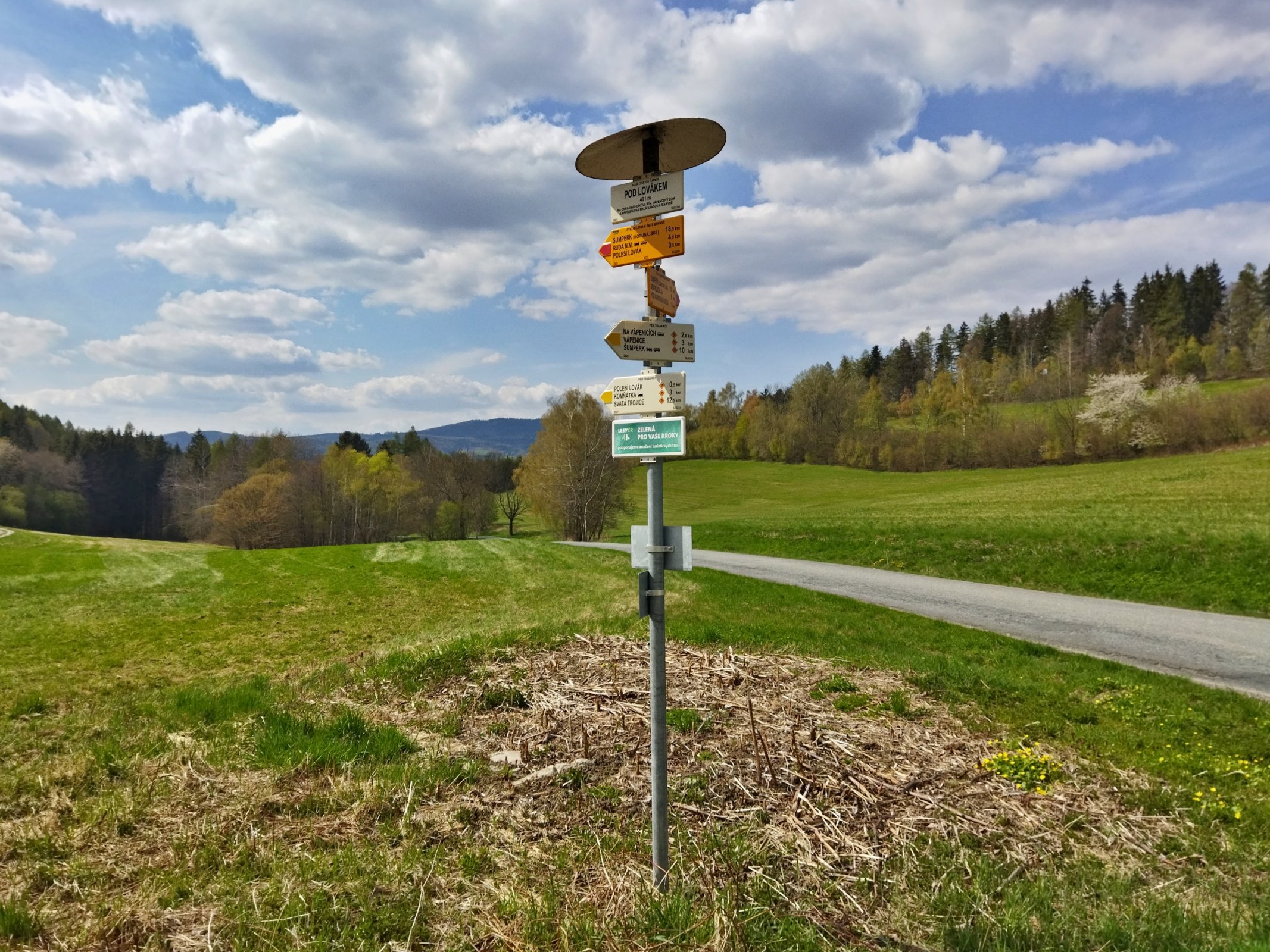 Nový rozcestník v současnosti slouží nejen pro onu „nekonečnou“ žlutou TZ, po které bychom se ze severomoravského Šumperka dostali až do východočeských Králík, ale také pro nově vybudovanou (resp. červeně vyznačenou) cyklotrasu č. 6285. Ta se „motá“ po (kolem, nad) Šumperku, okolních obcích (např. Bratrušov, Ruda nad Moravou, Bartoňov) i oblíbených turistických cílech (např. Kosteléček, Vápenice, Tulinka) …