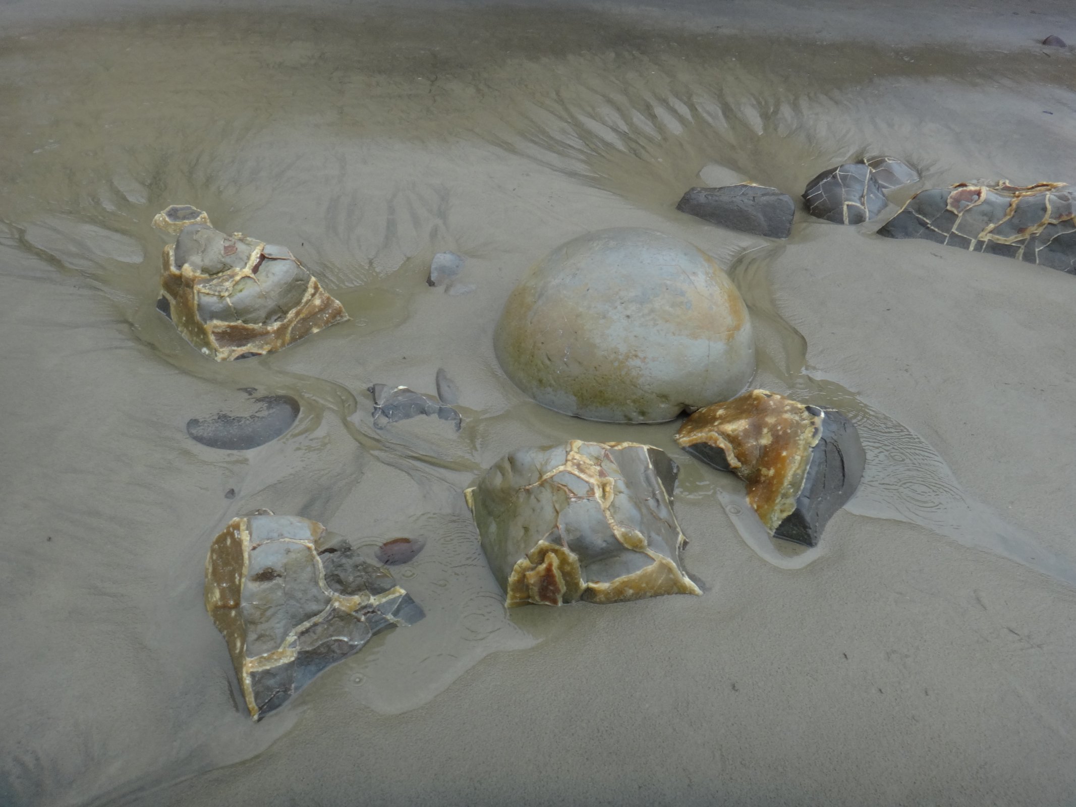 Nový Zéland - balvany na pláži Koekohe