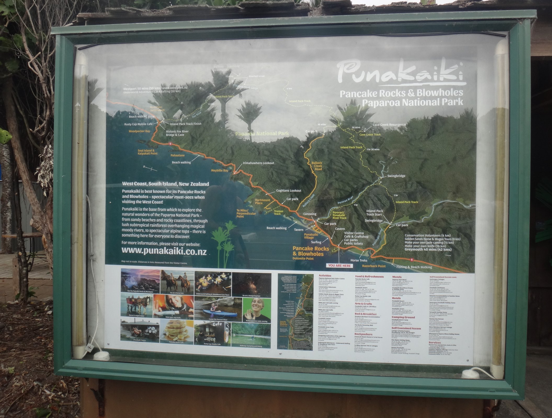 Výchozím bodem do NP Paparoa je osada Punakaiki. Je zde něco, co musíte vidět. Odtud můžeme na asi půlhodinové procházce prozkoumávat zázraky novozélandské přírody - od písečných pláží přes skalnaté kouzelné pobřeží, subtropický deštný prales až po nádherné vrcholky hor. Nejúžasnější je však pohled na "palačinky", vápencové útvary, které byly vytvořeny před 30 miliony lety. Z nejmenších úlomků mrtvých živočichů a rostlin byly vytvořeny na mořském dně 2 km pod povrchem. Fragmenty ztuhly do vrstev pod velkým tlakem vody. Ve skalních dírách - "dmychadlech" pozorujeme při přílivu jak se voda tříští o skaliska. Tato nádhera je přístupná i pro návštěvníky na kolečkových křeslech. Cestou se můžete poučit o geologii oblasti na infopanelech.