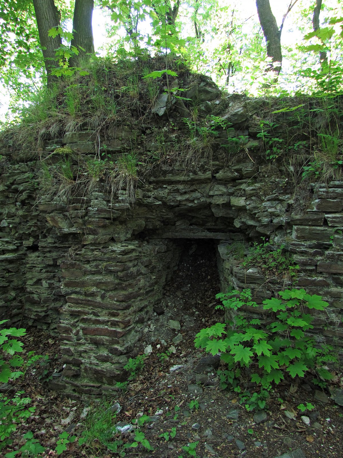 Hrad byl chráněn od západu i východu šíjovým příkopem hlubokým 11 m, skalnatý příkop oddělující zbytky zdiva věže od hřebene nad hradem dosahoval hloubky dokonce 15 metrů.