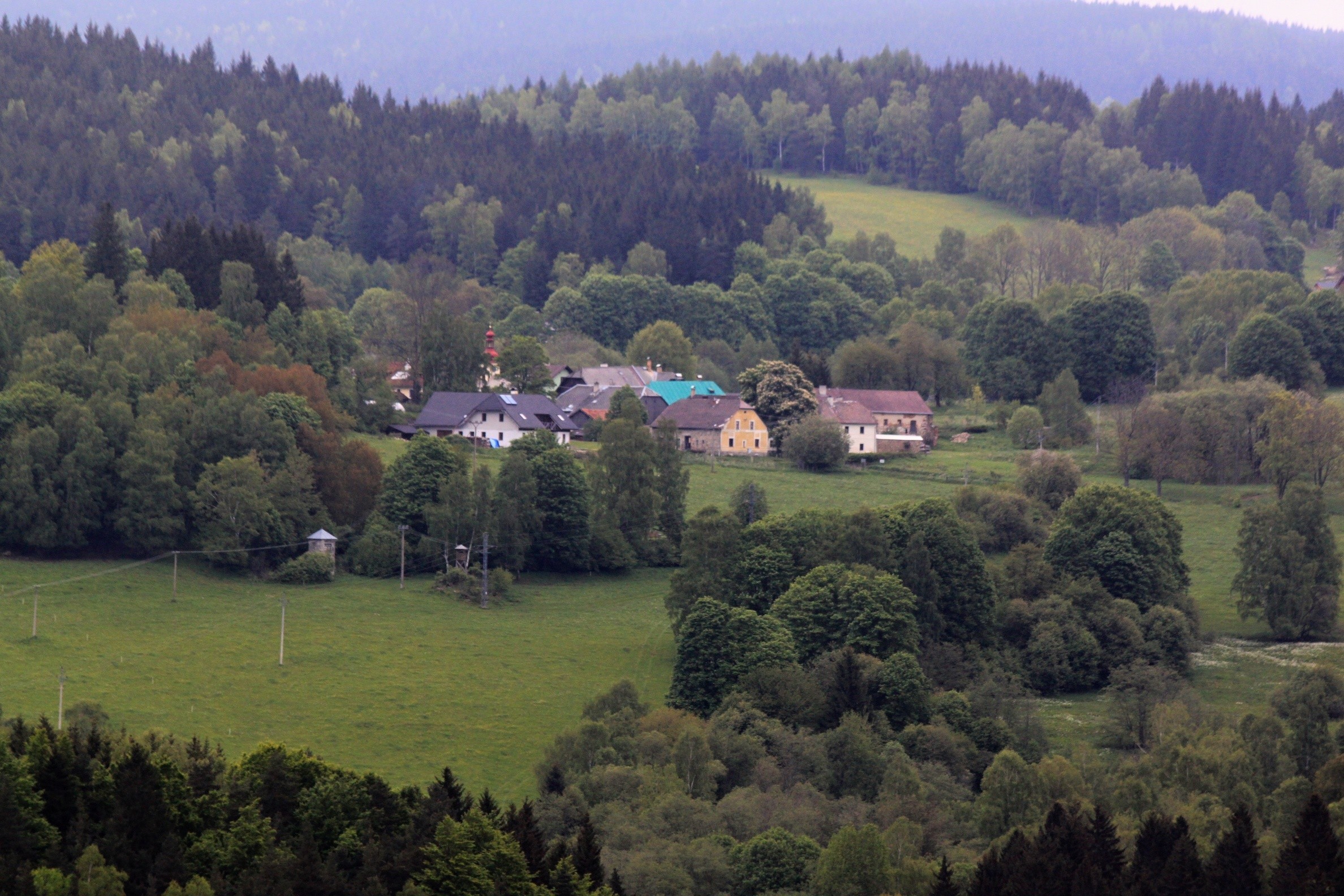 Obec se nalézá téměř na samém vrcholku hory V Pahorku 809m n m. a proto je z obce krásný rozhled po okolních vrcholcích a údolích.