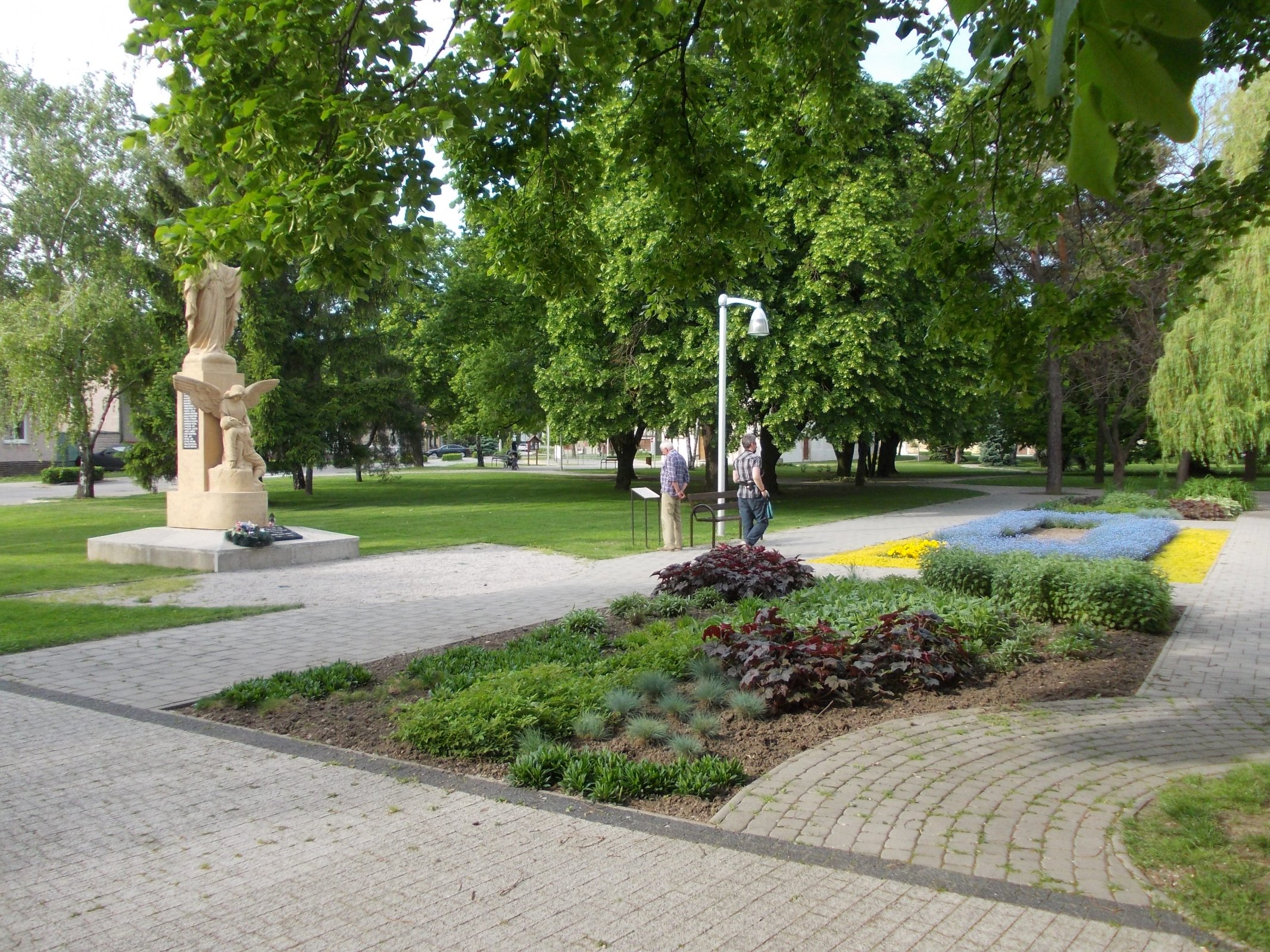 V kostolnom parku sa nachádza Pomník obetí 1. a 2. svetovej vojny. Pomník, zhotovený pravdepodobne z pieskovca tvorí socha Ježiša Krista na podstavci hranolovitého tvaru, po jeho bočných stranách sú na tmavých mramorových doskách vytesané mená obeti z oboch svetových vojen. Pred podstavcom je umiestnené súsošie umierajucého vojaka, ktorého drží v náručí anjel.