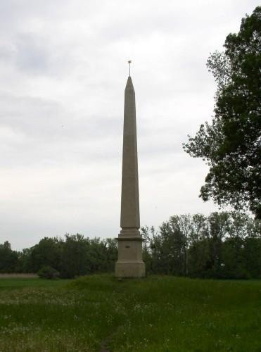 Celá stavba byla vybudována roku 1798 z pískovcových kvádrů na paměť uzavření míru mezi Francií a Rakouskem v Campo Formio téhož roku. Obelisk je 23 metrů vysoký. Přístup je nejsnazší po silnici z Lednice do Podivína a následně odbočkou u parkoviště za mostem přes Dyji, přejít severozápadním směrem na lesní cestu. Součást LEDNICKO - VALTICKÉHO AREÁLU.