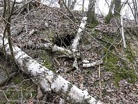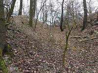 Nezbývá mi nic jiného než se po poli vydat tím směrem, který považuji za správný. Naštěstí je zima a nic zde neroste, tak je přesun vcelku nenáročný. Až na to mírně rozorané pole. Po chvíli se dostávám na správné místo k podchodu pod Místeckou. Dotyční mi neřekli správný směr, naopak trať vede od chatek za ulicí „Poplužní“ (jižně od této ulice) v jakémsi stromořadí. Tuto oblast jsem neprozkoumal, ale podle mapy by tomu tak mělo být. Nějaké fotky a popis by se měl nacházet zde: [6]. Za podchodem pod ulicí Místeckou je již směřování jasné. Jen kousek za ním, v těsné blízkosti hranice průmyslové zóny „Na Rovince“ je roklinka v současnosti zaplněná vodou. Po pár stech metrech podél pole lze ale již sestoupit a pokračovat dále. Nakonec se člověk napojí na val (násep), který jej dovede až k poslední části toho, co zbylo z trasy a to k mostu nad ulicí „Na Šancích“ v Nové Bělé. Dalšímu postupu již brání vzrostlá tráva a plot pozemku. Sestupuji dolů pod most a vydávám se doprava s tím, že přes Novou a Starou Bělou si ještě udělám kolečko přes Bělský les do Hrabůvky. Můj odhad správného směru není úplně přesný a tak se s velkým údivem dostávám na konec průmyslové zóny. Tedy mnohem blíž výchozímu bodu než jsem čekal. Pak už jen proběhnu táhlým chodníkem z jednoho konce průmyslové zóny na druhý, který je tak nudný jak naznačuje i název „Na Rovince“. Pokračuji přes Hrabůvku a Zábřeh až do Pískových dolů. Nakonec mám svých cca 18 km a jsem spokojen. Především z nových objevů.