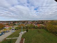 Rozhledny se většinou staví, aby se mohl poutník rozhlížet. Jednu zajímavou rozhledničku objevujeme v obci Fertőszentmiklós při cestě po silnici č. 5627 ze zámku Esterháza. My k ní přijíždíme po místní komunikaci …