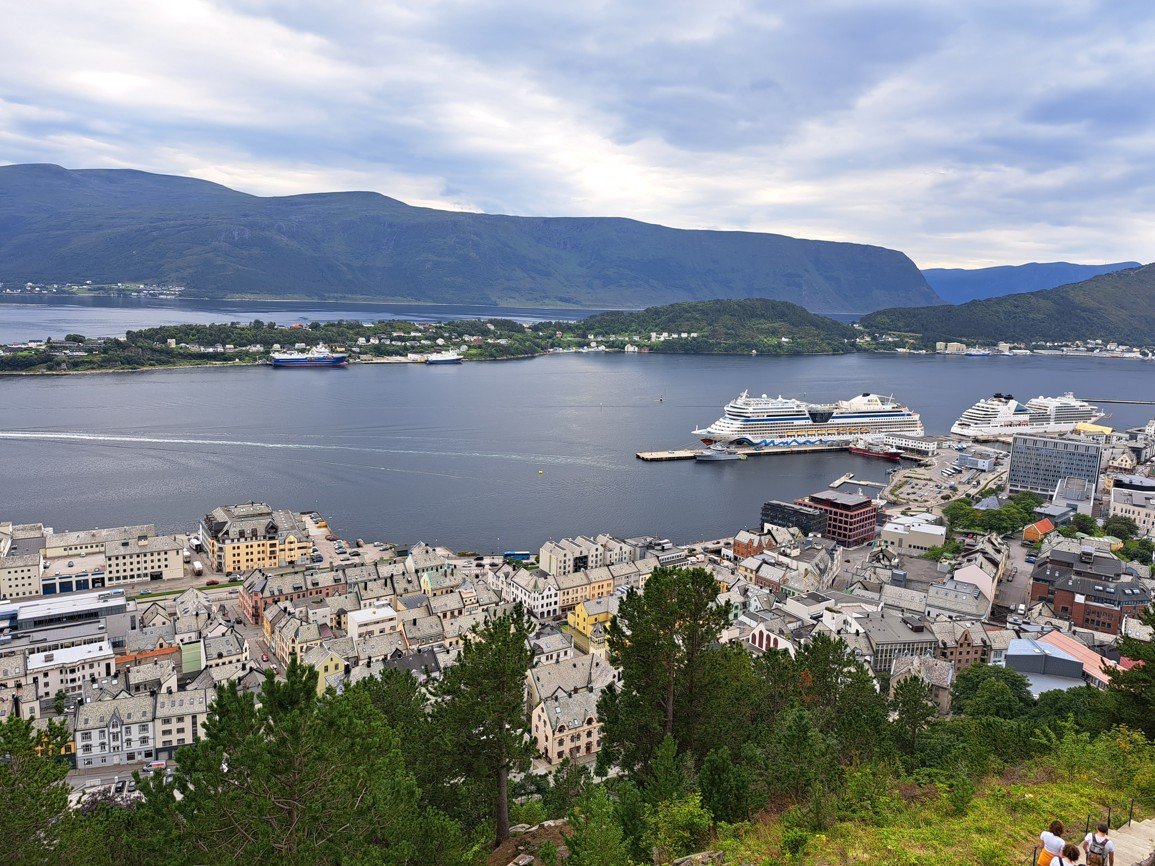 Městu Alesund se údajně říká Benátky severu. A něco na tom bude. Jeho umístění na několika menších ostrovech navzájem spojených mosty nemá chybu. Alesund s necelými 50 tisíci obyvateli má městský znak tvořený rybářskou lodí a 3 rybami. Jedná se o město s mimořádnou obchodní rybářskou tradicí i současností. Lodiček tady vidíme hodně, a tak bych i věřil, že se jedná o největším rybářský přístav Norska, odkud se vyváží velké množství solených a sušených ryb.