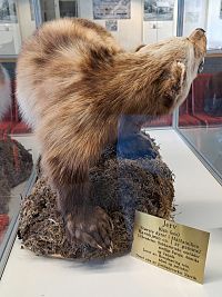 V budově je útulná čekárna také kavárnička (Jernbanecafeen). Mají zde také rosomáka, který ale nevypadá zrovna kamarádsky.