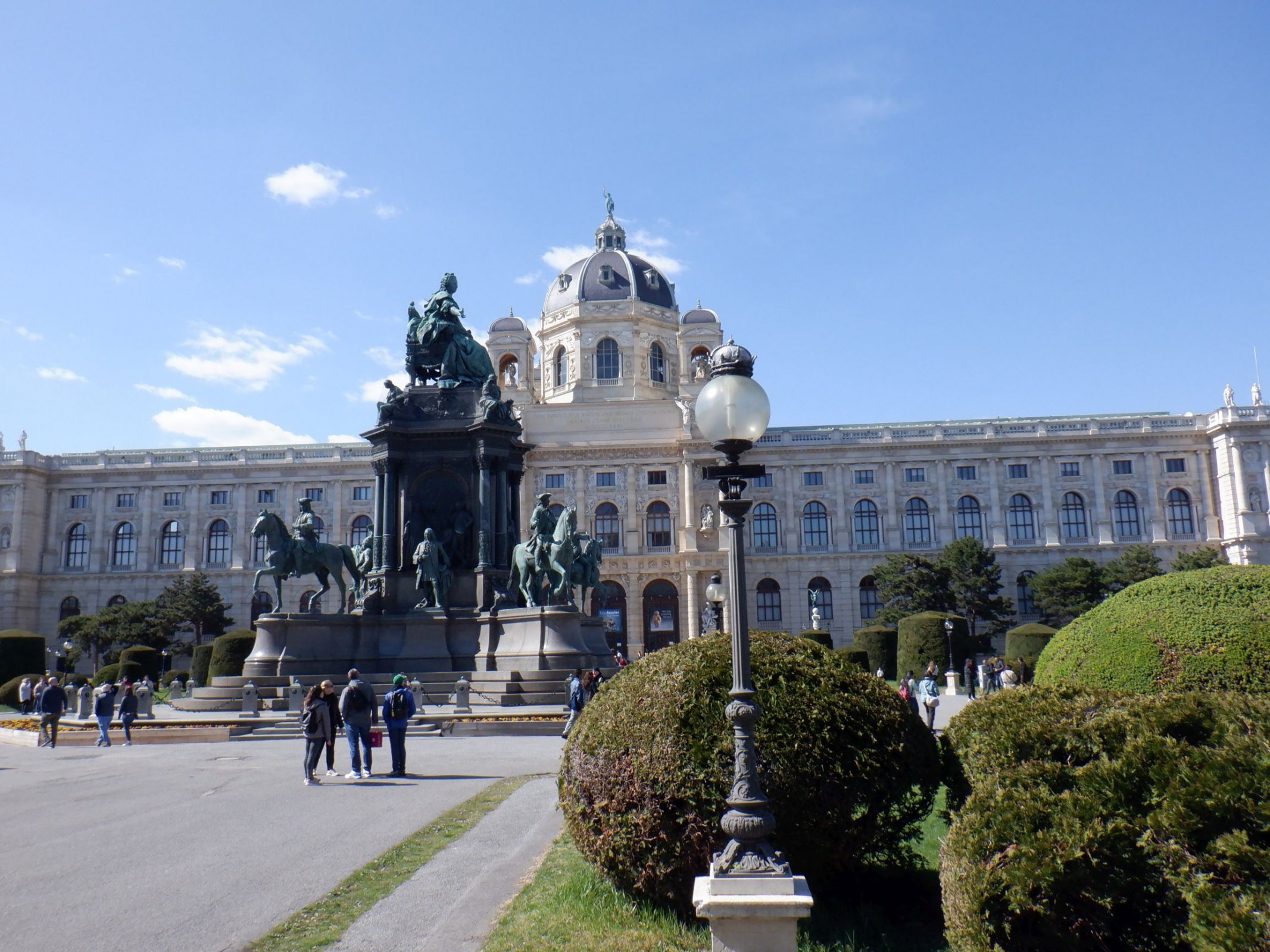 Ale zpátky za Marií do Vídně. Zmíněný honosný památník se nachází na hradním okruhu, mezi budovami Muzea dějin umění (Kunsthistorisches Museum) a Přírodního muzea (Naturhistorisches Museum). K jeho slavnostnímu odhalení došlo 13. května 1888, v den výročí narození císařovny Marie Terezie