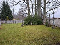 Areál zahrnuje kostel, hřbitov, ohradní zeď s branami a schodišti, objekt márnice a hroby, na kterých nejsou klasické kamenné náhrobky, ale především zajímavé tepané železné kříže.