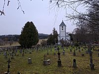 Obrázky ze Šumavy a kostel sv. Jakuba s hřbitovem v obci Želnava