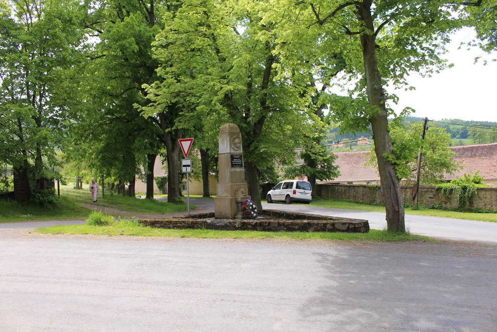 Obec Obytce se nachází přibližně šest kilometrů východně od Klatov. Při pohledu do mapy vyplyne, že vsí prochází jen silnice třetí třídy a hlavní silnice a železnice probíhají ve větší vzdálenosti od obce. Navíc směrem k východu se zvedají kopečky Plánického hřebene a do nich míří jen jediná silnice. Jak obec tak i její okolí působí jakousi opuštěností. Snad to byl i jeden z důvodů tuto ves navštívit. Na první pohled upoutá množství starých stromů všude kolem a po zastavení na větším prostranství je prvním objektem, který vidíme, zajímavý pomník padlým ve světových válkách. Ten stojí na vydlážděné ploše, kterou obepíná nízká kamenná zídka. Pomník je na čtvercové kamenné desce, nad kterou je šest k vrcholu se postupně zužujících stupňů. Ve spodní části je reliéf přilby mezi listy a nápis 1914 – 1918. Výše je deska, která je památkou na oběti druhé světové války. Nad ní hlava vojáka ve věnci a vrchol. Na bočních stranách jsou jména padlých a na zadní straně nápis: Postaveno roku 1926.