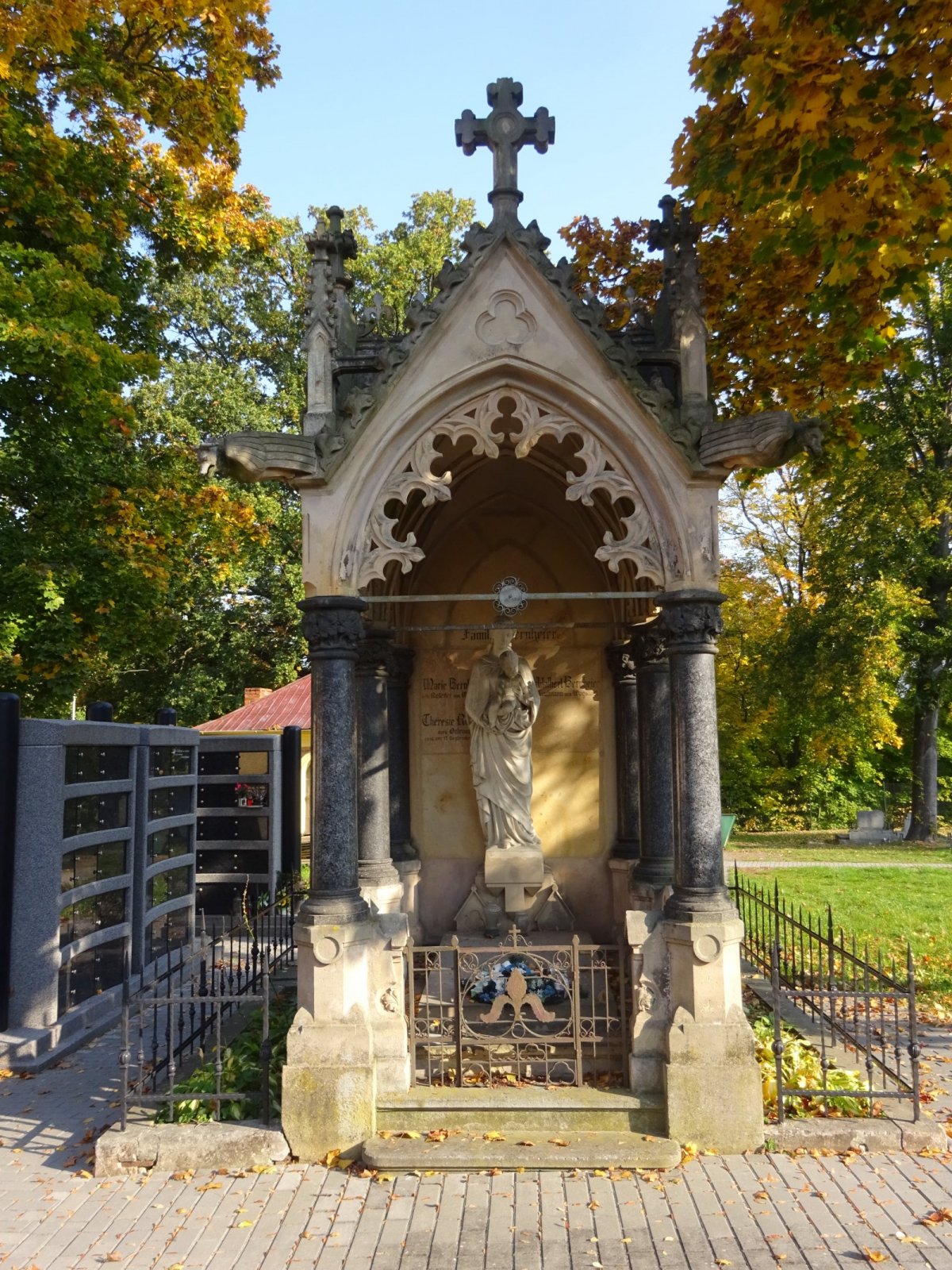 Dalším uměleckým skvostem a památkou je na hřbitově v Odrách pískovcová hrobka rodiny Bernheierů. Stejně jako hrobka Gerlichů, i tato byla postavena v r. 1883. Má podobu altánu, kde je krásně zbobená klenba podepírána sloupy. Náhrobní deska a sloupy jsou z mramoru, ohrádka kolem je kovová. Na zadní straně vnitřního prostoru jsou vytesána jména zemřelých příslušníků rodiny. Hrobku dotváří plastika Panny Marie s děťátkem.