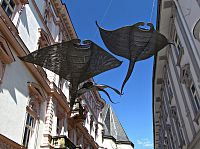 Čas od času s manželkou vyrážíme do Olomouce, jejíž půvabné a rozsáhlé historické jádro jsme si zamilovali. Při poslední návštěvě jsme s úžasem zůstali stát před vyústěním Opletalovy ulice do Horního náměstí. Na jejím začátku se nám totiž nad hlavami v mírném vánku vznášela a pohupovala jakási tajemná monstra. Při detailnějším zaostření zraku zjíštěno, že se jedná o plastiky rejnoků, které centrum města překvapivě oživily.