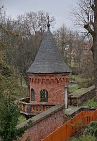 Olomouc – cihelná schodišťová věž (Bezručovy sady)