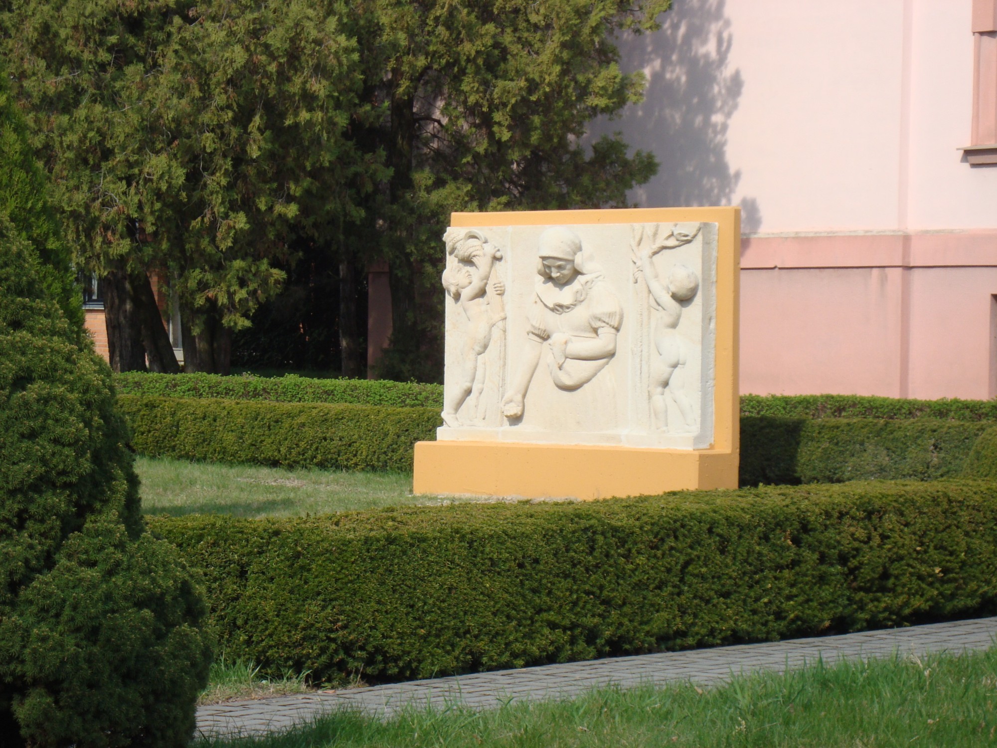 Klášterní Hradisko-ulice U Hradiska-SOŠS-plastika ve štítu-Foto:Ulrych Mir.  autor: hanakzhor