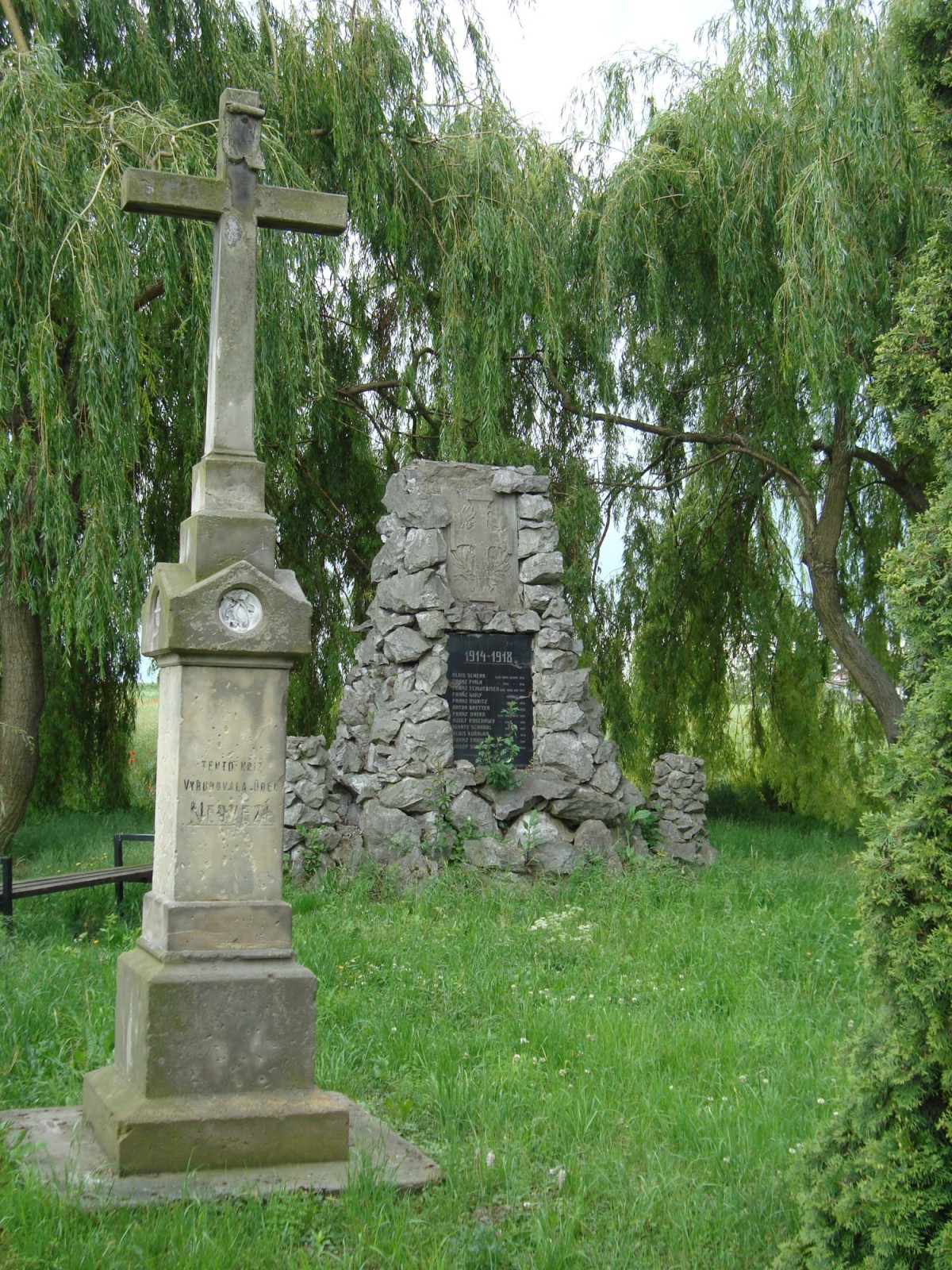 Nedvězí-parčík na začátku obce se smírčím křížem, kamenným křížem z r.1869 a pomníkem obětem I.světové války-detail pomníku-Foto:Ulrych Mir.