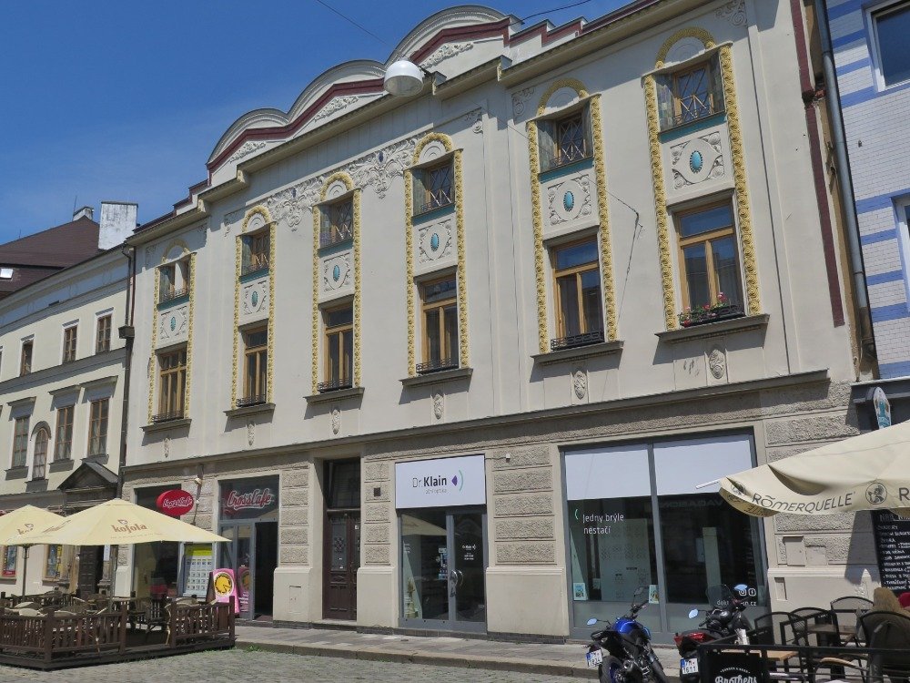 Vše nám ale naopak zjednoduší fakt, že dům bývá popisován jako pozdně secesní stavba ve stylu pražské provenience stojící na třech původních gotických parcelách, která ve své podobě zachovala i klasicistní dispozicí dvorních přístaveb. V každém případě ale řadový měšťanský dům na olomoucké adrese Riegrova č.p. 382/24 upoutá na první pohled nejvíce svým uličním průčelím. A tam je ta pozdní secese prostě nepřehlédnutelná. Autorem projektu její podoby se stal v roce 1911 známý olomoucký architekt a stavitel Karel Starý mladší.
