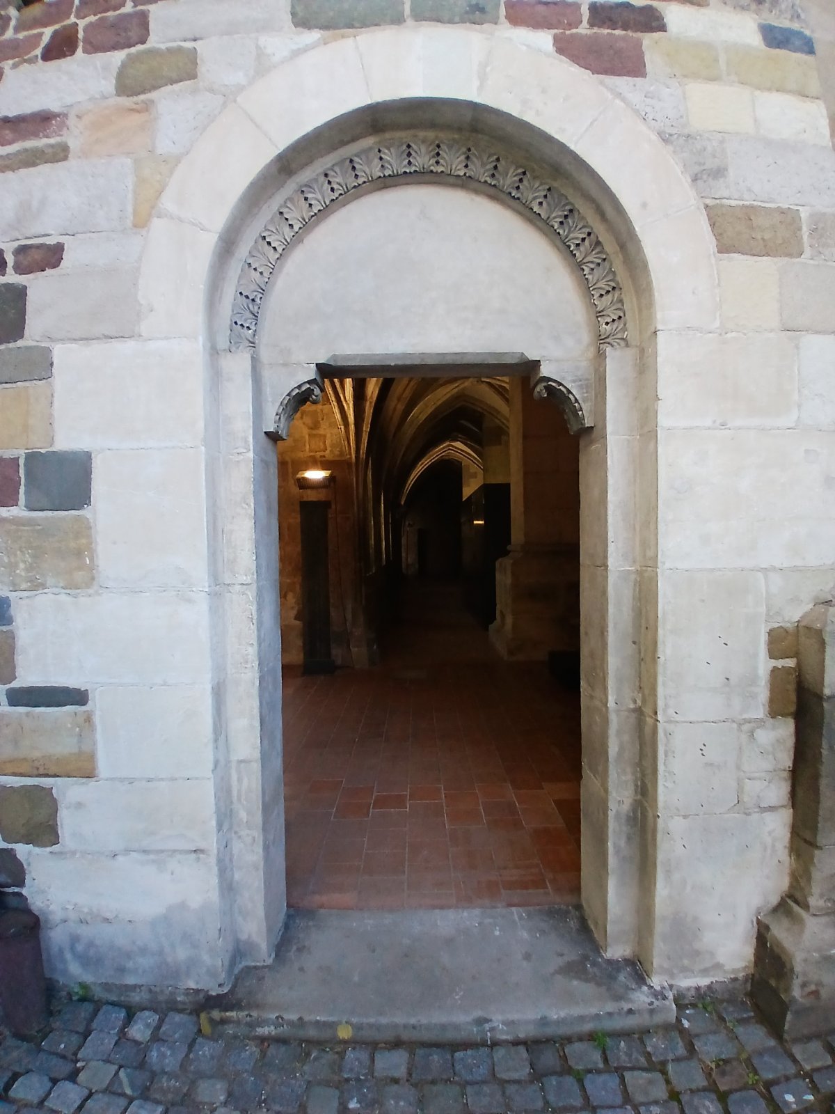 A práve do tejto gotickej chodby sme vstúpili cez vchodové dvere. Hneď naľavo bol umiestnené súsošie Krista na Olivetskej hore, ktoré patrí k najvýznamnejším dielam neskorej gotiky v strednej Európe.