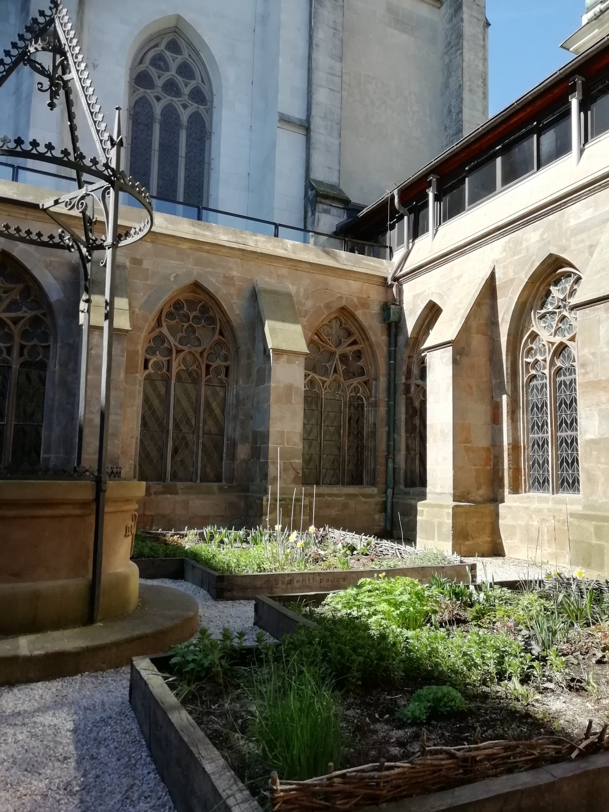 rajský dvor - úprava so záhonmi pripomína jeho pôvodný účel, priestor pre motlidbu a rozjímanie