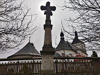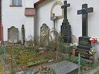 Ohradní zeď s branou, vrcholovým křížem a sochami Panny Marie a sv. Jana Evangelisty i pískovcový krucifix jsou součástí zajímavého a významného architektonického celku, jehož ústřední částí je hřbitovní kostel Na…