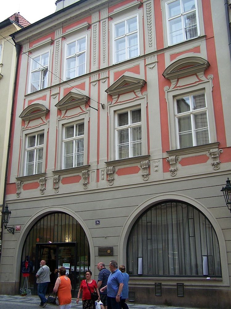 Pamětní deska poblíž vchodu připomíná fakt, že tu v letech 1910 - 1911 přednášel Albert Einstein. V tomto domě se nacházel salon Berty Fantové a scházeli se tu německy píšící spisovatelé či osobnosti, jak Franz Kafka, Franz Werfel, Max Brod nebo Egon Ervin Kisch.