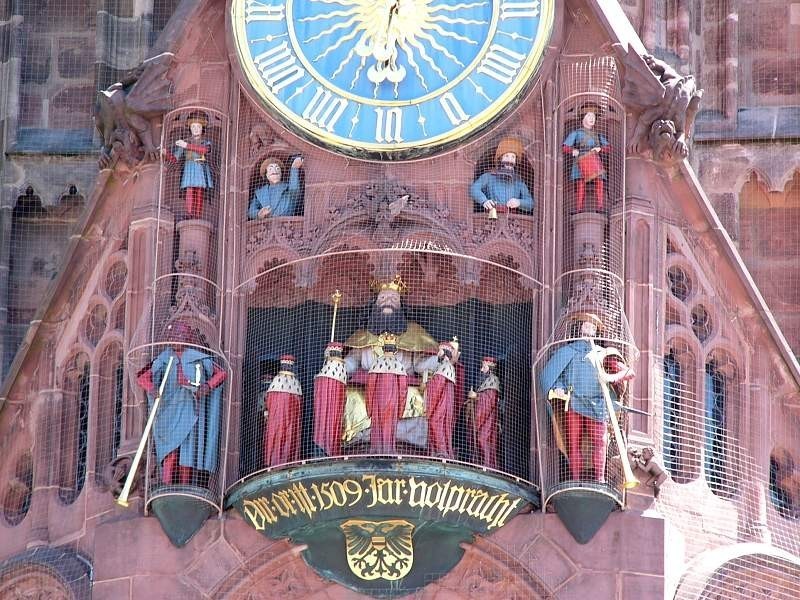 Turistickou podívanou města Norimberk je orloj zvaný Männleinlaufen, který je umístěný v arkýři ve štítu kostela Panny Marie (Frauenkirche) na náměstí Hauptmarkt. Kostel byl založen římským císařem a českým králem Karlem IV. v roce 1355 a původně zde měly být uloženy říšské korunovační klenoty.
