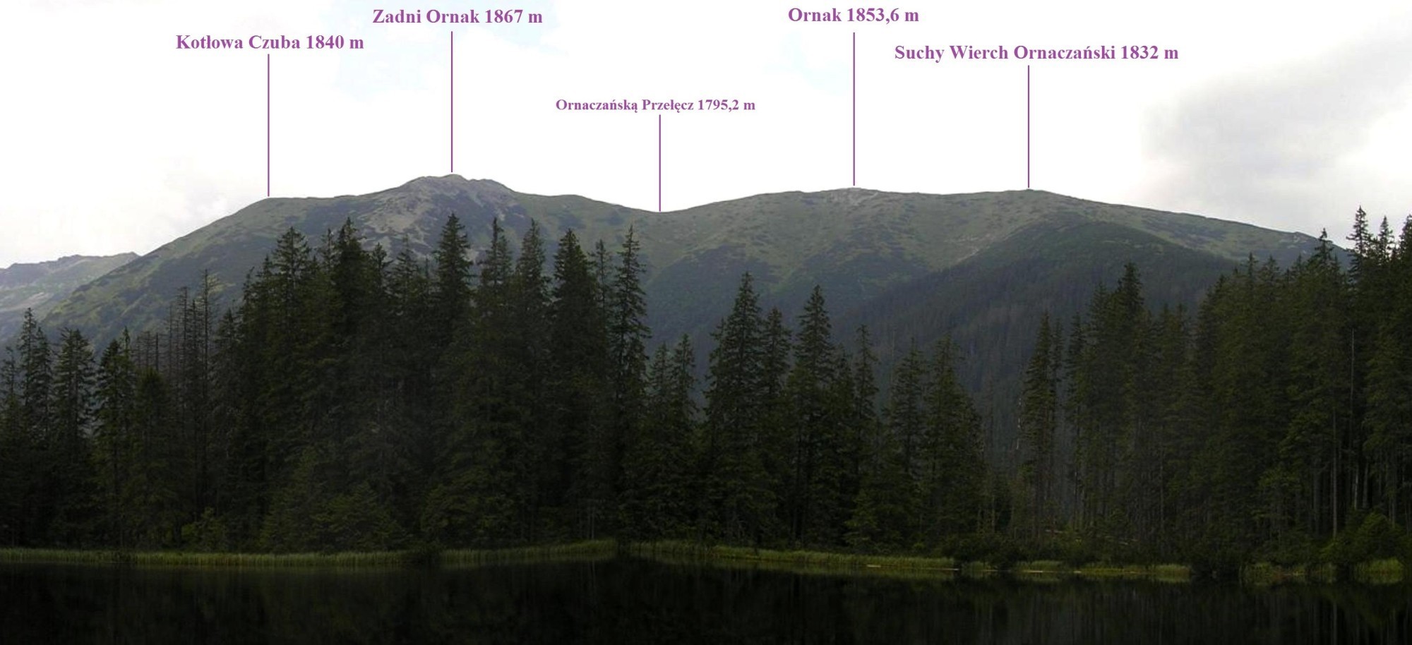 - boční hřeben v polské části Západních Tater. Vybíhá k severu z hlavního hřebene mezi vrcholy Starorobociańskiego Wierchu (slovensky: Klin) a Błyszcza (Blyšť), konkrétně z, v hřebeni, nevýrazného vrcholku – Siwy Zwornik (1965 m n.m.). Je to asi 3,5 km dlouhý, masívní hřeben. Odděluje Doline Starorobociańska (horní větev doliny Chochołowskiej), na západě, od Doliny Pyszniańskiej (horní větev Doliny Kościeliskiej) Od Siwego Zworniku je oddělen sedlem Siwa Przełęcz (1812 m). V hřebeni se potom (směrem k severu) nacházejí tyto vrcholy a sedla: Kotłowa Czuba (1840 m),sedlo – Kotłowe Siodło, nejvýšší vrchol - Zadni Ornak (1867 m),sedlo - Ornaczańską Przełęcz (1795,2 m), vrchol – Ornak (1853,6 m), sedlo - Wyżnią Ornaczańską Przełęcz (1825 m)a vrchol - Suchy Wierch Ornaczański (Banista -1832 m). Hřeben na severu uzavírá mohutné sedlo - Iwaniacka Przełęcz (1459,2 m), která jej odděluje od vápencového Kominiarskiego Wierchu (1829,2 m). Hřeben Ornaku převyšuje okolní doliny o 500 až 700 výškových metrů. Na jeho severovýchodních úpatích se rozkládá dříve vypásána paseka - „Hala Ornak“. Dnes na ní stojí turistická chata - Schronisko PTTK na Hali Ornak. Do Doliny Starorobociańskiej padá z hřebene několik žlebů: Banisty Żleb, Pośredni Żleb, Graniczniak, Żleb na Przełęcz, Żleb pod Pyszną. Do Doliny Pyszniańskiej: Żleb Piszczałki, Ornaczański Żleb a nejznámější Żleb pod Banie. Těmito žleby často v zimě sjíždějí laviny. Hřeben je budován metamorfovanými horninami s příměsí žuly. Vrcholky a část masívu při severním okraji je budují křemenné pískovce. V masívu se už od 15. století těžily barevné kovy a od 17. století i železné rudy – v listinách ze 16. stol. je uváděn starý název masivu – „Hornok“. Na travnatém hřebeni a v jeho okolí dominují horské rostlinné druhy, vázané na žulový podklad. Např.: pěchava dvouřadá (Oreochloa disticha), sítina trojklaná (Juncus trifidus), plavuň jedlová (Huperzia selago), zvonek alpský (Campanula alpina), koniklec alpínský bílý (Pulsatilla alba) a další tatranské druhy. Na západních úbočích Suchego Wierchu Ornaczańskiego je nejzápadnější přirozený výskyt borovice limby (pinus cemra) v polských Tatrách.