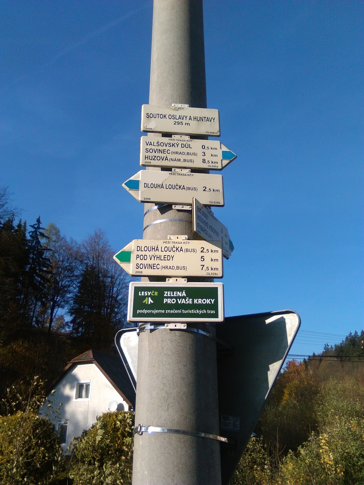 Tento soutok leží u rozcestí Soutok Oslavy a Huntavy u obce Valšův Důl, kde se spojuje zelená turistická trasa od Rešovských vodopádů a modrá ze Sovince, které pak spolu pokračují do Dlouhé Loučky. Je zde i parkovište, kde můžete zaparkovat a pěšky pokračovat Valšovským žlebem na Rešovské vodopády.