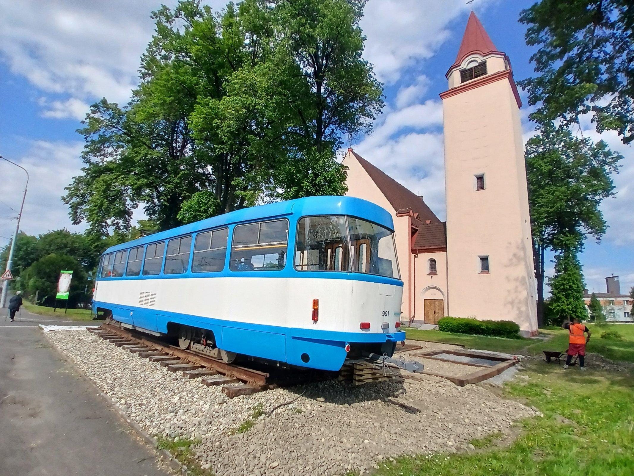 Električka bude v budúcnosti slúžiť ako "tramvajová kavárna", farnosť ju chce otvoriť počas júnového festivalu Slezská linie. V dobe, keď som si ju pozrel prebiehali práce na úprave okolia priestoru ku kostolu, zrejme tam bude posedenie aj pred kaviarňou. Električka typu Tatra T3 je následníkom svojho predchodcu električky Tatra T2, je výrobkom vtedajšieho podniku ČKD Praha v závode Tatra Smíchov.