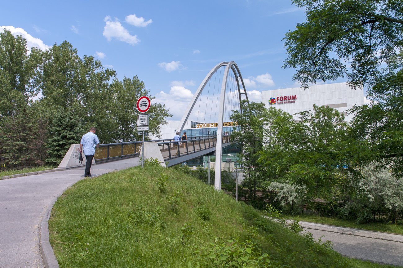Určitě to může plati o lávce u Karoliny, přesněji obchodního centra Nová Karolina. Nová lávka nahradila v roce 2011 starší nevyhovující dílo. Vlastně nejde o lávku jednu, ale dvě. Celková délka přemostění je 250 m. Komunikace spojuje prostor u centrálního autobusového nádraží v Ostravě u ulice 28. října. Ta první vlastně celkem nezajímavá spojitá trámová konstrukce, která je osazená na základech původní lávky. Délka hlavního pole činí 24 m, celková šířka pole je 4,6 m, volná šířka mezi zábradlím je 3,5m. 61 m dlouhá mostovka je vyřešena jako dodatečně předepjatý beton. Řez lávky má stejný průřez mostovky, jako má pokračující konstrukce nové hlavní obloukové lávky.