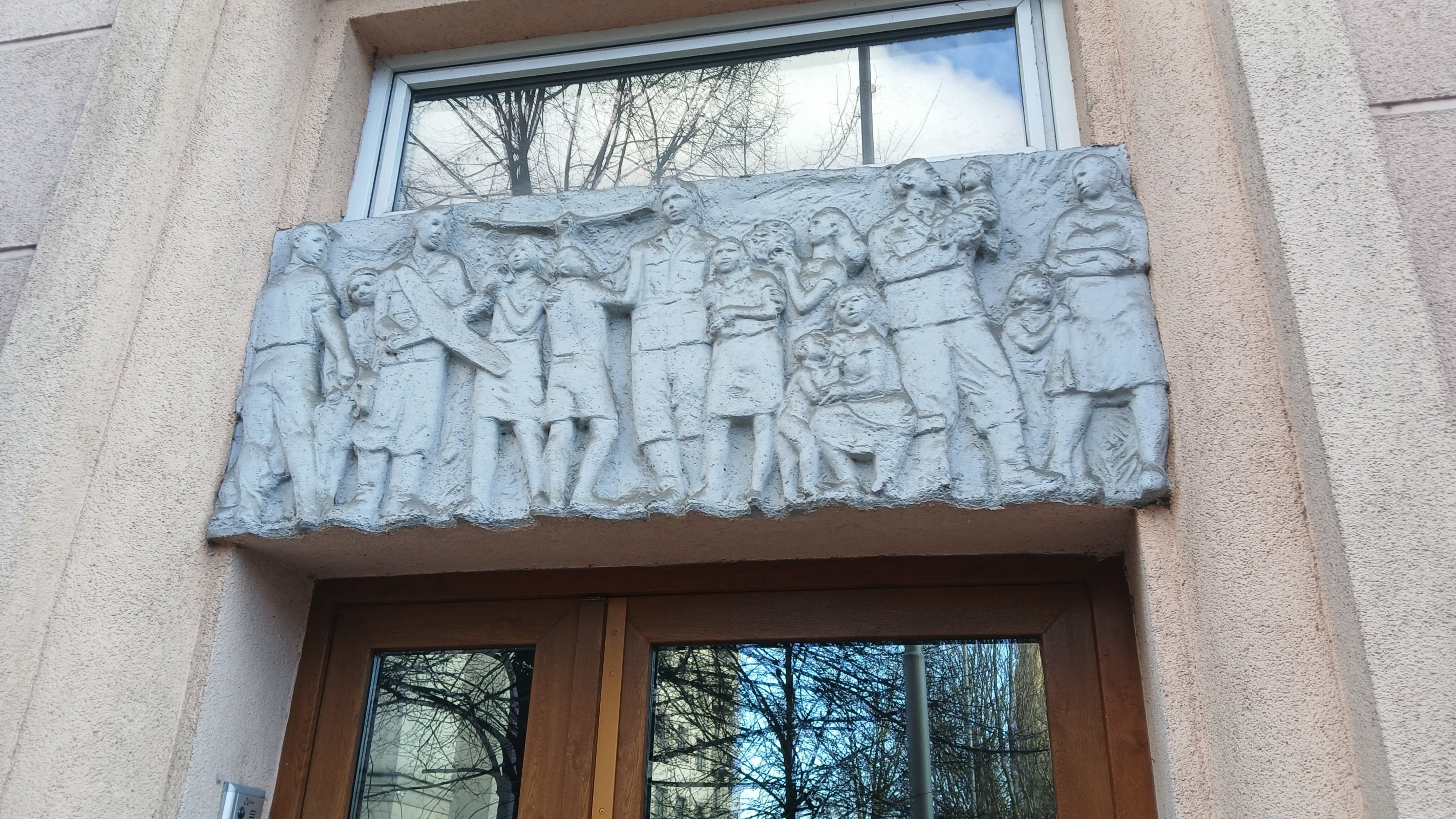 Ostrava - Reliéfy nad vchodmi bytového domu na ul. 30. dubna