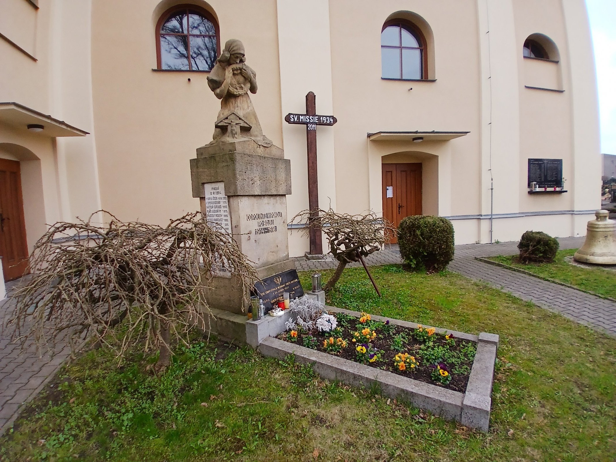 Pamätník obetiam prvej svetovej vojny sa nachádza v areáli kostola Nanebovzatia Panny Marie, ide o exterierovú plastiku z roku 1925. Je zhotovená z hořického pieskovca, realizáciu zaistila vtedajšia olomoucka firma Urban.