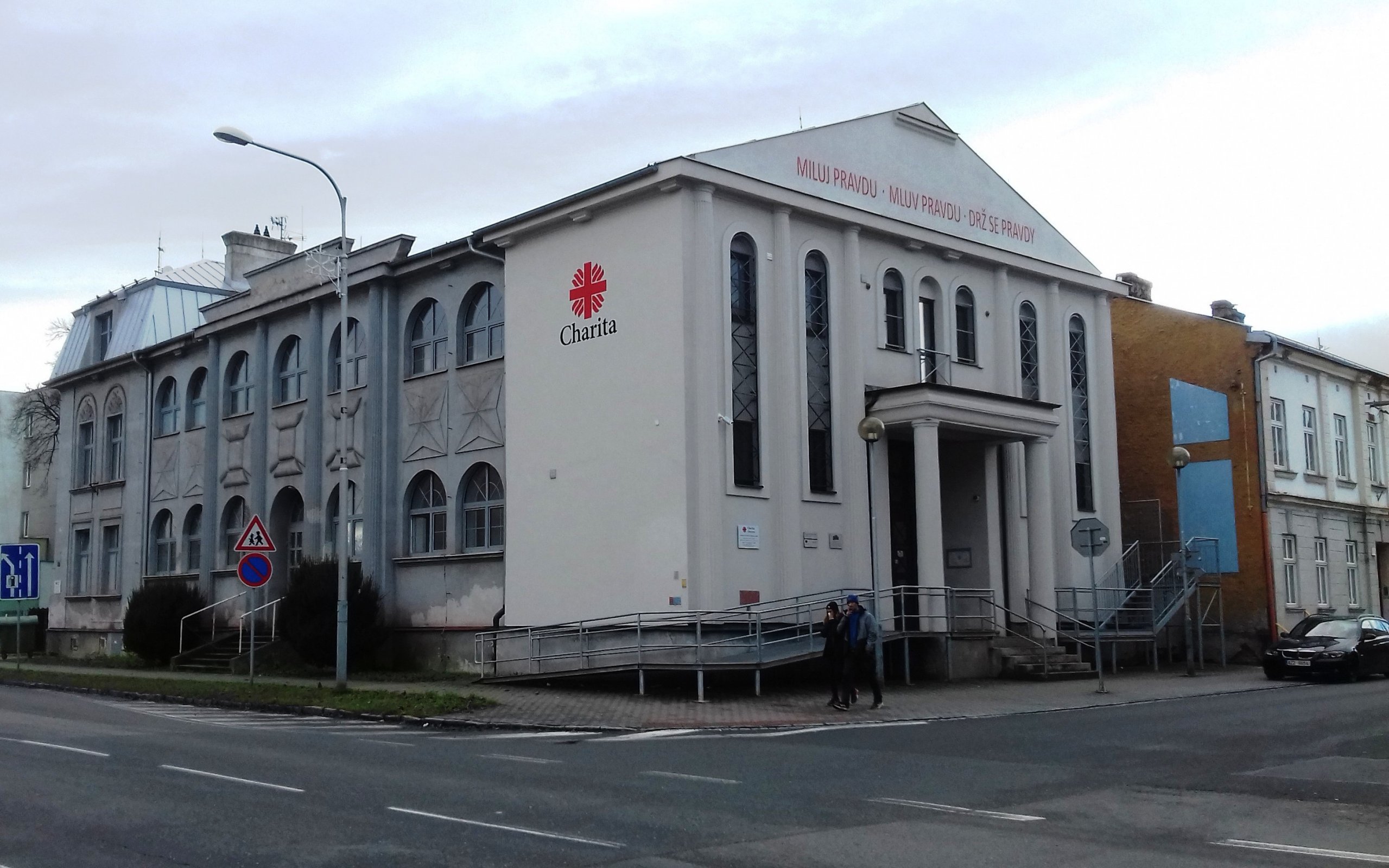 Tento symbolický nápis bol počas opravy Charitou Ostrava zmenený, zmenili hlavný štít priečelia, zmenil sa aj vchod do budovy, podľa povolaných došlo k znehodnoteniu historickej stavby. Ja som si túto budovu pozrel prvýkrát niekedy pred kovidom, pôvodný výrok majstra Jana Husa bol po úprave štítu oklieštený, z nápisu ostalo len PRAVDU, MLUV PRAVDU D PRAVDY, BRAŇ PRAVDU AŽ DO SMRTI.