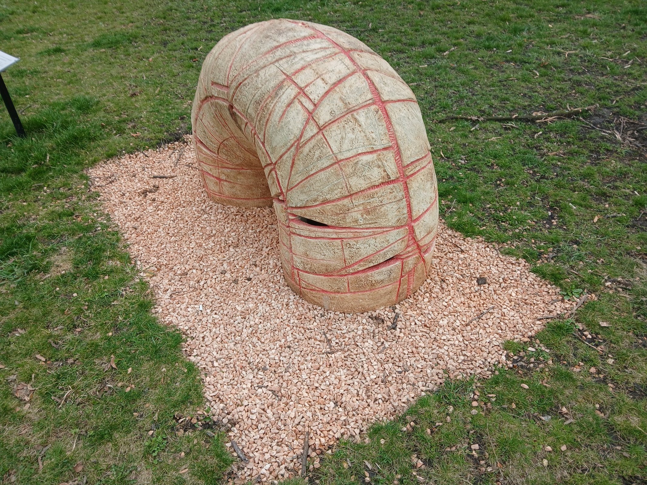 Má názov "Arch-etypal/arch-aical/arch-aelogical - Oblúk ako prapôvodný tvar". Autorom sochy je slovenský umelec Andrej Fryč. Jeho dielo znázorňuje počiatok formovania Zeme, je odkazom na prvohorné útvary a zkameneliny. Plastika Andreja Friča vznikla počas 2. ročníku Keramického sympózia Ostrava na tému "Počátek", ktoré podporil Moravskoslezský kraj a spoločnosť SEEIF Ceramic a.s.