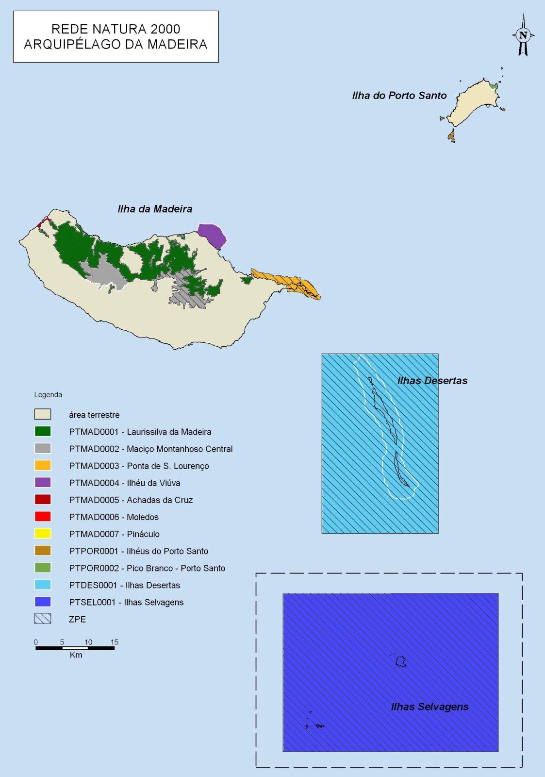 Madeira: mapa původních vavřínových lesů (laurissilva)